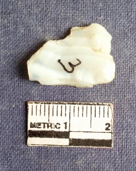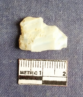 | Description / विवरण | A flate flake of quartz, transluscent white in color, retouched. |