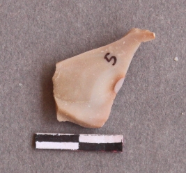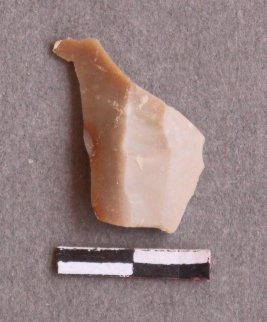 | Description / विवरण | Chert stone fragment with bulb of percussion with flaked marks on the other side. |
