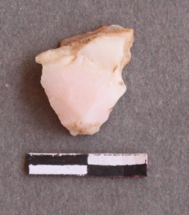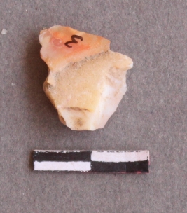 | Description / विवरण | It is lithic debitage. Chalcedony, pinkish, bulb of percussion seen. |