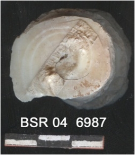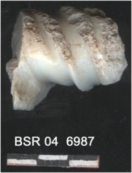 | Description / विवरण | It is a cut collumell. It is of T. Pyrum. It is white in color and the surface is rough. |