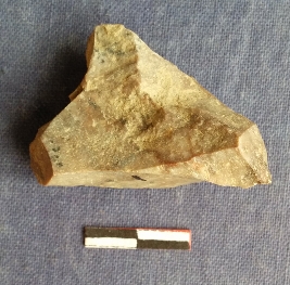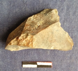 | Description / विवरण | This is a flaked chert stone fragment, flakes had been removed from all the sides surfaces, there is a very small portion of cortex seen on one edge. |