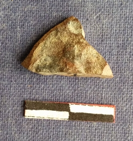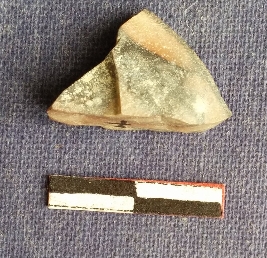 | Description / विवरण | A triangular chert stone flake with a thin edge covered with cortex, sharp ridges. |