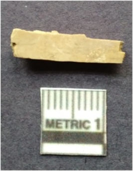 | Description / विवरण | Shell bangle fragment of circlet with square section and striations. |
