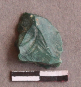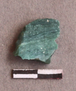 | Description / विवरण | This is a flat flaked fragment of jasper stone with cut edges and ripples. |