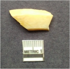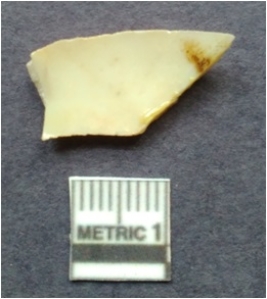 | Description / विवरण | A fragment of a shell bangle manufacturing waste. Glossy interior. |
