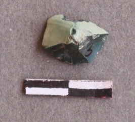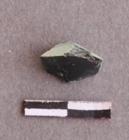 | Description / विवरण | It is lithic debitage of jasper with copper impurities on the surface with bulb of percussion. |