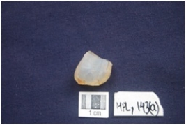 | Description / विवरण | A chalcedony core with platform and fourteen blade scars. |