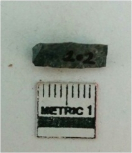| Description / विवरण | Jasper is a cryptocrystalline piece with cut edges as a result of flaking. |