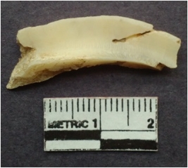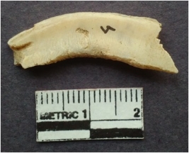 | Description / विवरण | Shell fragment of circlet with a square section and striations. |