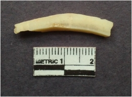 | Description / विवरण | Shell fragment of circlet with a square section and striations. |