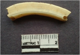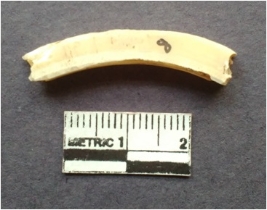 | Description / विवरण | Shell fragment of circlet with a square section and striations. |