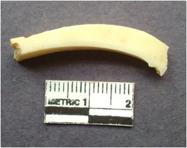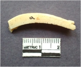 | Description / विवरण | Shell fragment of circlet with a square section and striations. |