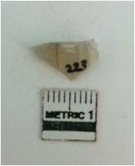 | Provenance / उद्गम/क्षेत्र | Bagasra, BSR Eh3, NE Layer ⑤, 215 cm Depth |