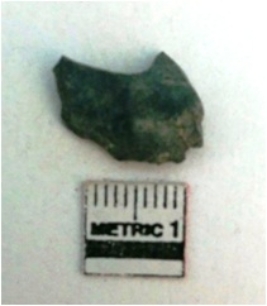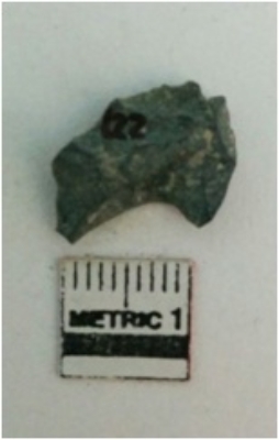 | Description / विवरण | The dark schist piece has flake scars on the surface and sharp edges as a result of flaking. |