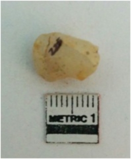 | Description / विवरण | The quartz piece has whitish color with flake scars on the surface. |