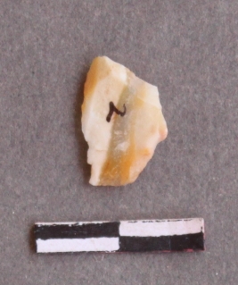 | Description / विवरण | It is lithic debitage flaked with cut edges. It is chalcedony stone fragment. |
