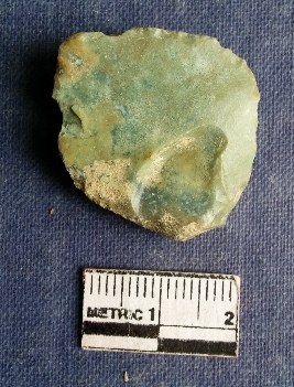 | Description / विवरण | This is a flat shaped chert stone flake, flakes had been removed and ripples are seen on one surface, there is a small portion with surfacial residece. |