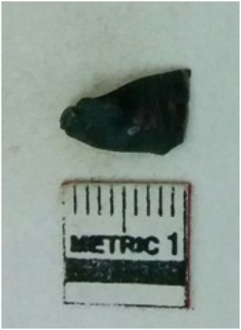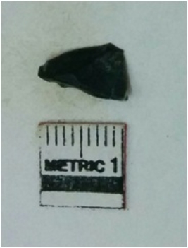| Description / विवरण | Jasper is a cryptocrystalline piece with cut edges as a result of flaking. |