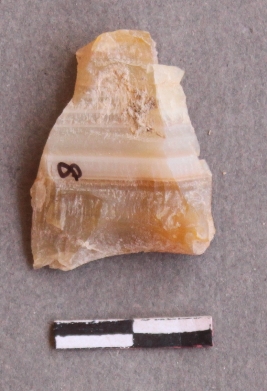 | Description / विवरण | It is lithic debitage flaked with cut edges. It is banded agate stone fragment. |