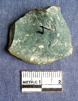 | Description / विवरण | This is a chert flake, flat with cortex covered on one surface, chizeled mark with some stiation marks seen on surface. |