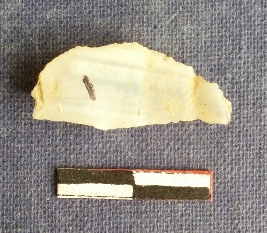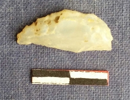 | Description / विवरण | This is a quartz flake, conical in shape, one side covered with cortex, transluscent white in color, bulb of percussion seen on one side. |