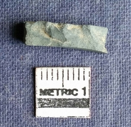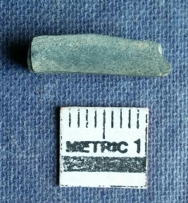 | Description / विवरण | This is a chert stone fragment, rectangular in shape with flaked ridges on oen surface. All of them three surface are smooth, broken edges and greenish in color. |