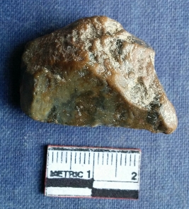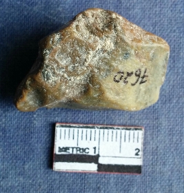 | Description / विवरण | This is a chert stone flake with abraded surface. One portion of the surface resembles cortex with rough erroded surface. |