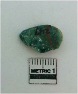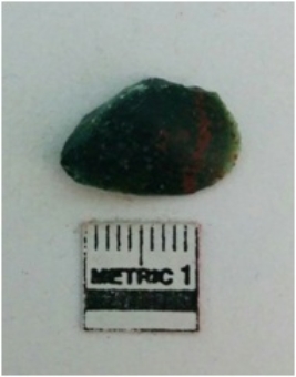 | Description / विवरण | Jasper is a cryptocrystalline piece with cut edges as a result of flaking. |
