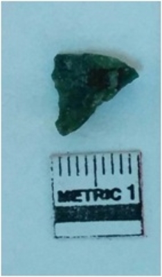 | Description / विवरण | Jasper is a cryptocrystalline piece with cut edges as a result of flaking. |