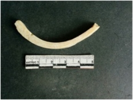 | Description / विवरण | This is a shell bangle fragment with broken ends. Unfinished and unpolished but with sharp cut edges, look like manufacturing waste piece. |