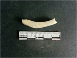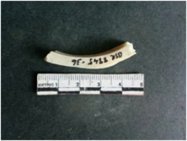 | Description / विवरण | This is a shell bangle fragment with broken ends. Unfinished and unpolished but with sharp cut edges, look like manufacturing waste piece. |