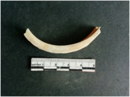 | Description / विवरण | This is a shell bangle fragment with broken ends. Unfinished and unpolished but with sharp cut edges, look like manufacturing waste piece. |