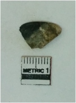 | Description / विवरण | Jasper is a cryptocrystalline piece with cut edges as a result of flaking. |