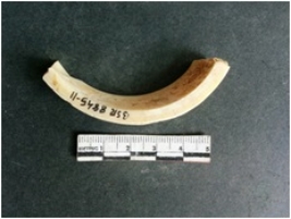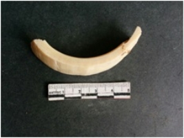 | Description / विवरण | This is a shell bangle fragment with broken ends. Unfinished and unpolished but with sharp cut edges, look like manufacturing waste piece. |