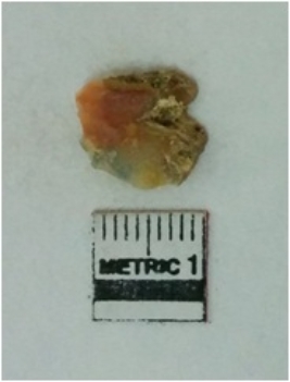 | Description / विवरण | It is a chalcedony flake with negative flake scars and sharp ends. |