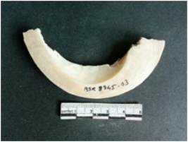 | Description / विवरण | This is a shell bangle fragment with broken ends. Unfinished and unpolished but with sharp cut edges, look like manufacturing waste piece. |