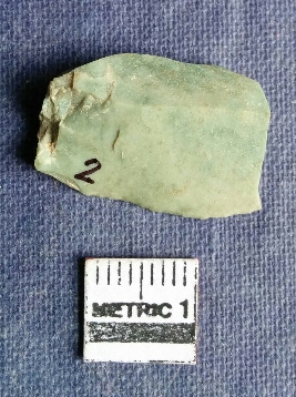 | Description / विवरण | This is a chert stone flake, resembles a blade fragment with flaked ridges and sharp ridges and triangular cross section at both ends. Greenish in color. |