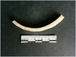 | Description / विवरण | This is a shell bangle fragment with broken ends. Unfinished and unpolished but with sharp cut edges, look like manufacturing waste piece. |