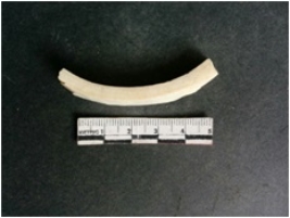 | Description / विवरण | This is a shell bangle fragment with broken ends. Unfinished and unpolished but with sharp cut edges, look like manufacturing waste piece. |
