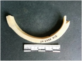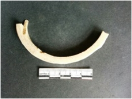 | Description / विवरण | This is a shell bangle fragment with broken ends. Unfinished and unpolished but with sharp cut edges, look like manufacturing waste piece. |