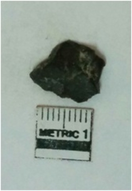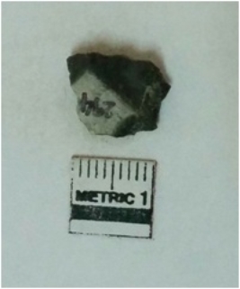 | Description / विवरण | The dark schist piece has flake scars on the surface and sharp edges as a result of flaking. |