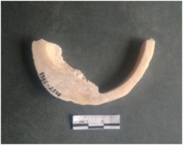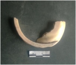 | Description / विवरण | This is a shell circlet fragment with two broken ends. Unfinished and unpolished with cut edges. Possibly either it is a raw material or waste product in the manufacturing unit. |