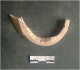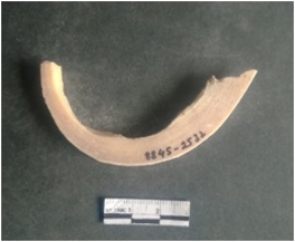 | Description / विवरण | This is a shell circlet fragment with two broken ends. Unfinished and unpolished with cut edges. Possibly either it is a raw material or waste product in the manufacturing unit. |