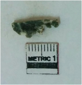 | Description / विवरण | Jasper is a cryptocrystalline piece with cut edges as a result of flaking. |