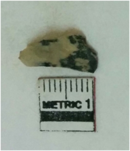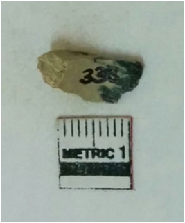 | Description / विवरण | Jasper is a cryptocrystalline piece with cut edges as a result of flaking. |