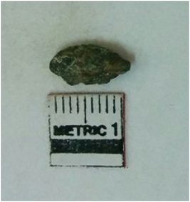| Description / विवरण | Jasper is a cryptocrystalline piece with cut edges as a result of flaking. |