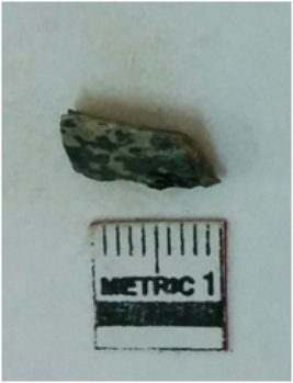 | Description / विवरण | Jasper is a cryptocrystalline piece with cut edges as a result of flaking. |