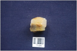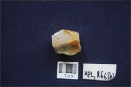 | Description / विवरण | A banded agate core with platform and seven flake scars. |