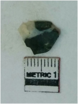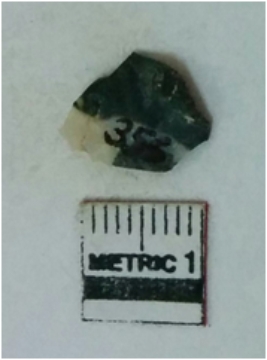| Description / विवरण | Jasper is a cryptocrystalline piece with cut edges as a result of flaking. |