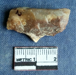 | Description / विवरण | This is a flat flake of chert stone with flaked marks all over the surface. |